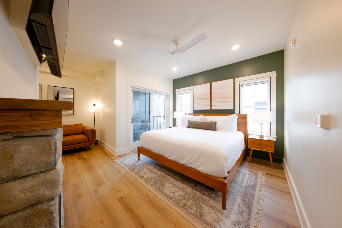 Todas las habitaciones dan al cielo del sur y a las ondulantes montañas Blue Ridge. Nuestras habitaciones King con sofá cama tienen capacidad para 3 personas y cuentan con una lujosa cama tamaño king, una acogedora zona de estar con sofá cama y un baño privado con ducha a ras de suelo. Todas las habitaciones tienen TV inteligente, alarma/altavoz Bluetooth, caja fuerte para computadoras portátiles y mininevera. Espera una utilidad refinada y un diseño inteligente en todas partes. Este tipo de habitación tiene aproximadamente 340 pies cuadrados.