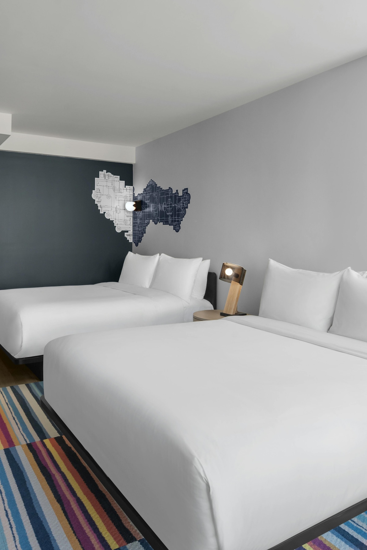 Diseñado para crear una sensación de ligereza. No hay desorden: cada característica tiene un propósito. Amplios techos de 9 pies, duchas a ras de suelo con cabezales de ducha de efecto lluvia, artículos de baño personalizados Aloft de Drybar y habitaciones equipadas con televisores de pantalla plana de 42 pulgadas Full HD.