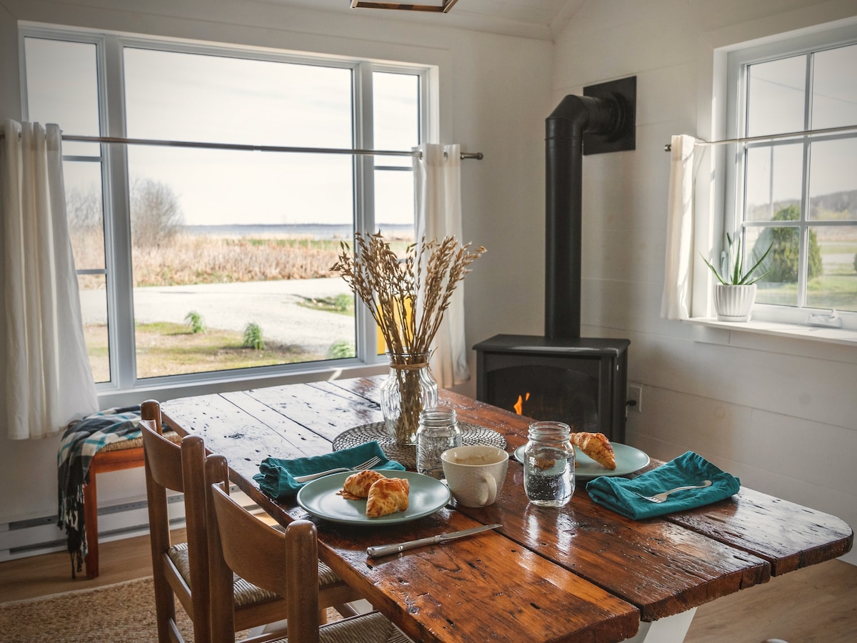 *MARCH & APRIL AVAILS* Welcome to Saltbox by the Bay, your 4-season escape. Perfect for couples, a small family/friends getaway or solo retreat. This vintage cottage has been reimagined with luxe amenities & cozy vibes. Play boardgames & classic albums, as you watch sunsets over the bay. Experience cottage country, year round: visit Quayle's Brewery, pamper yourself at Vetta Nordic Spa, explore charming nearby towns, ski/snowboard at Mount St. Louis & enjoy some glow-in-the dark bowling.