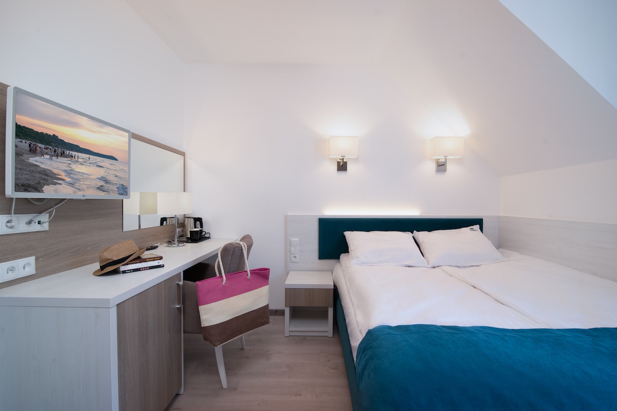 Doskonale wyposażony ośrodek, położony w cichej i spokojnej dzielnicy Władysławowa - BŁĘKITNE WZGORZE – Twoje ustronne miejsce do odpoczynku położone zaledwie 800 metrów od przepięknej plaży. Błękitne Wzgórze jest miejscem idealnym dla par oraz par z małymi dziećmi. Do Twojej dyspozycji oddajemy 56 wygodnych pokoi 2-osobowych, wyposażonych w wygodne łoża małżeńskie oraz łazienki z prysznicami, płaskie telewizory, biurka, szafy i lampki.