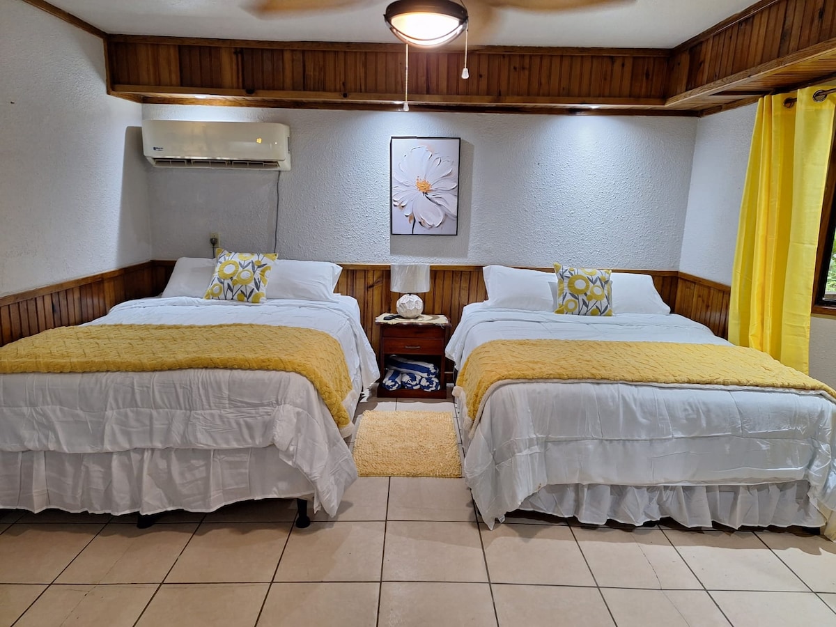 Ubicado a solo unos pasos de la playa, ofrece el retiro tropical definitivo. Con dos amplios dormitorios, tu estancia aquí promete un sueño reparador. La cocina totalmente equipada te invita a desatar tu chef interior. Disfruta del transporte gratuito desde el servicio de transporte del hotel al aeropuerto (programado con al menos 48 horas de anticipación), junto con acceso exclusivo a las comodidades del Blue Roatan Resort que se muestran en nuestra galería.
