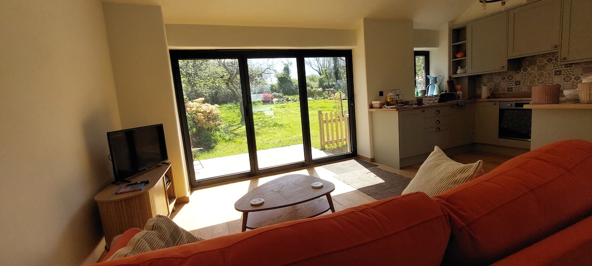 Vivimos en una ubicación tranquila situada a las afueras de Barnstaple, escondido en una zona residencial tranquila. Los servicios más cercanos están a unos 15 minutos a pie. “La suite Tarka”se compone de 3 habitaciones separadas más una sala de jardín cubierta con puntos eléctricos. Hay una cama tamaño king, un sofá de 2 plazas, un pequeño comedor y una pequeña zona de cocina bien equipada que incluye una nevera std, una freidora con dos cajones ninja y vitrocerámica individual. Se proporcionan vajilla, sartenes y cubiertos. Uso de la bañera de hidromasaje por un costo adicional.