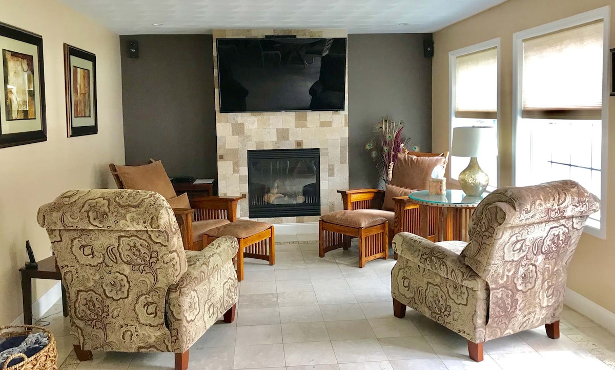 Experimenta el lujo y la comodidad en nuestra propiedad de nueva construcción. Maravíllate con las impresionantes vistas panorámicas de la montaña Rusk a través de ventanas que van del suelo al techo. Relájate en la sauna o en el jacuzzi y reúnete alrededor de la hoguera para pasar noches acogedoras. Disfruta de noches de cine al aire libre con nuestro proyector o saborea delicias a la parrilla en la zona del patio. Caliéntate junto a la chimenea, explora las estaciones de esquí, los clubes de golf y mucho más. Es el refugio perfecto para familias y amigos. ¡Reserva ahora y crea recuerdos inolvidables!