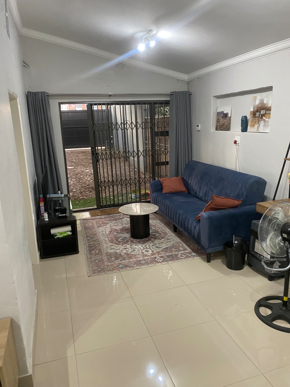-Situado en Little Falls/West Rand. - Entrada privada a la suite Studio. - RESPALDO Y RESPALDO DE AGUA. - Wifi gratuito, TV con Netflix, Disney+, YouTube/Music, +más - En la ducha, el lavabo y el inodoro de la suite. -1 cama doble y 1 sofá cama. - Cocina pequeña para preparar alimentos y lavarse. - Frigorífico, microondas, hervidor, tostadora, plancha, calentador (en invierno y períodos de frío), ventilador y secador de pelo. Cubiertos y vajilla. -Más de 11 restaurantes de comida rápida populares y Clearwater Mall en un radio de 2 km. Estacionamiento GRATUITO seguro en las instalaciones.