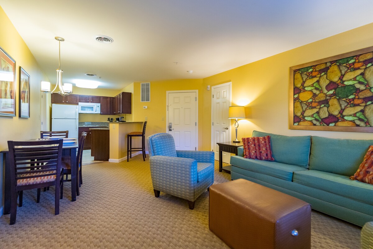 Apartamento de 1 dormitorio con cama tamaño king • cocina • sala de estar • piscina