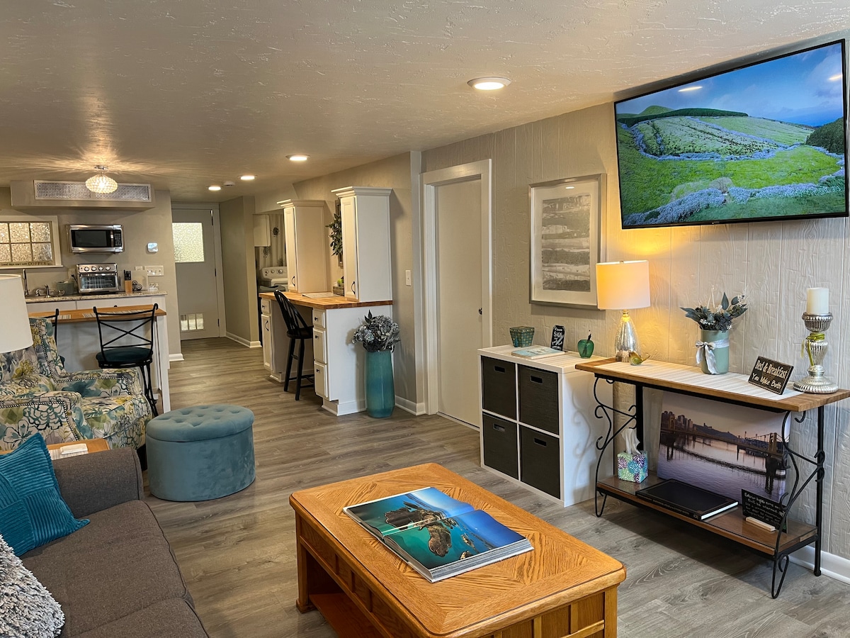 ¡Suite privada muy bien decorada con planta abierta diseñada para la relajación y la comodidad! Estaciona junto a la pared frontal en nuestra amplia entrada, a solo unos pasos de la puerta de entrada nivelada cubierta. Entra, siéntate y siéntete como en casa. Disfruta de la televisión (zona de estar), duerme en una cómoda cama tamaño queen (dormitorio), café gratuito (cocina pequeña) o date una agradable ducha caliente (baño). Fácil acceso a restaurantes, tiendas, Pgh y Laurel Highlands a través de la Ruta 30 y la salida 67 de la autopista de peaje de Pensilvania. Pulsa ♥ para guardar y encontrarnos más fácilmente. ♥️