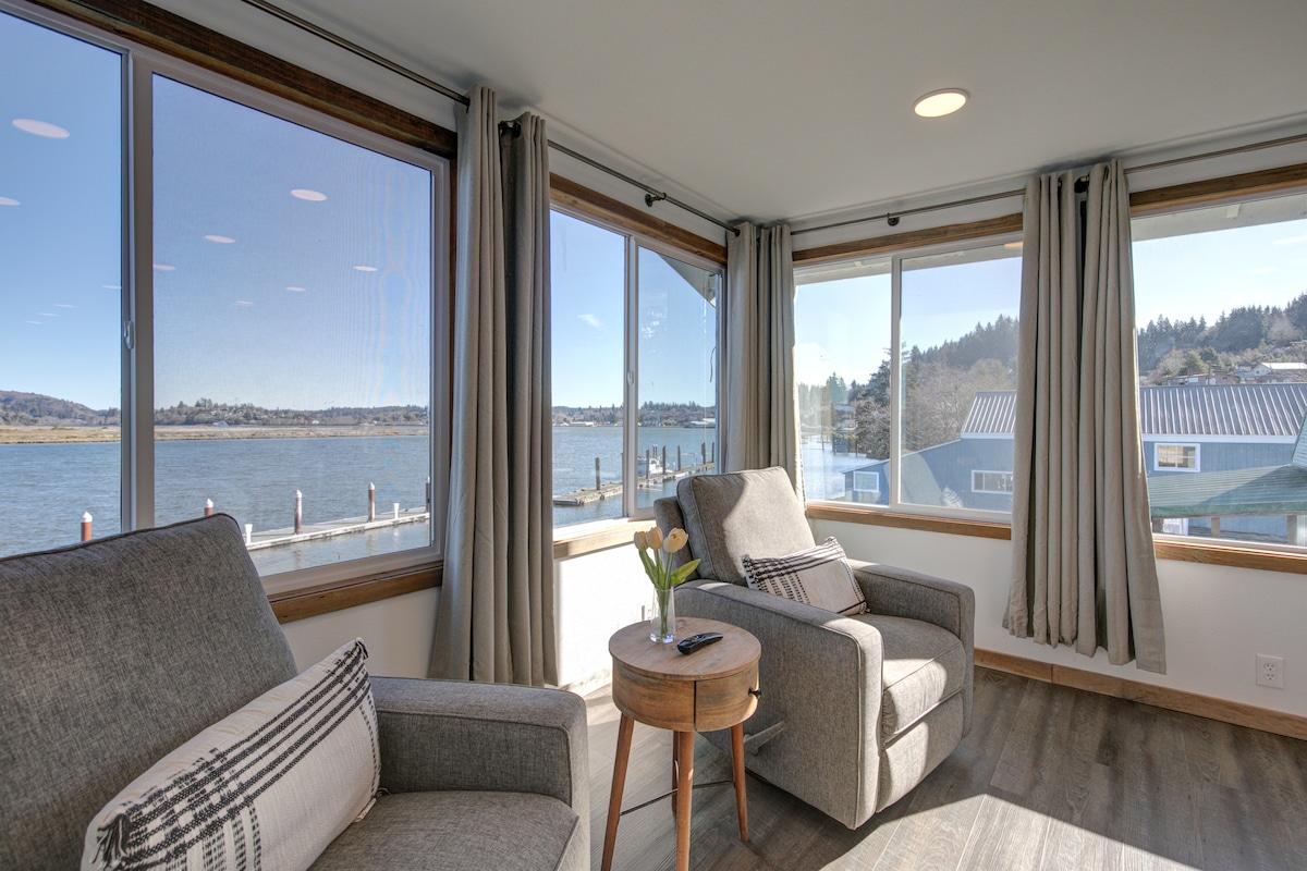 Westport is 4 minutes! The beach is 5 minutes! Fantastic sea-sations are 0 minutes away! Storms, sunsets and sea-life. Dig razor clams nearby. 1 bedroom with queen bed. Double couch in living room. Large full bath. Quiet, private, clean 1940's cottage above the beautiful Elk River estuary. 180 degree waterfront view SE to NW. Covered patio set up to relax outside. Fully fenced for kids and pets. Accommodates 1-3 guests. Spotless cleaning between guests for better peace of mind for everybody.