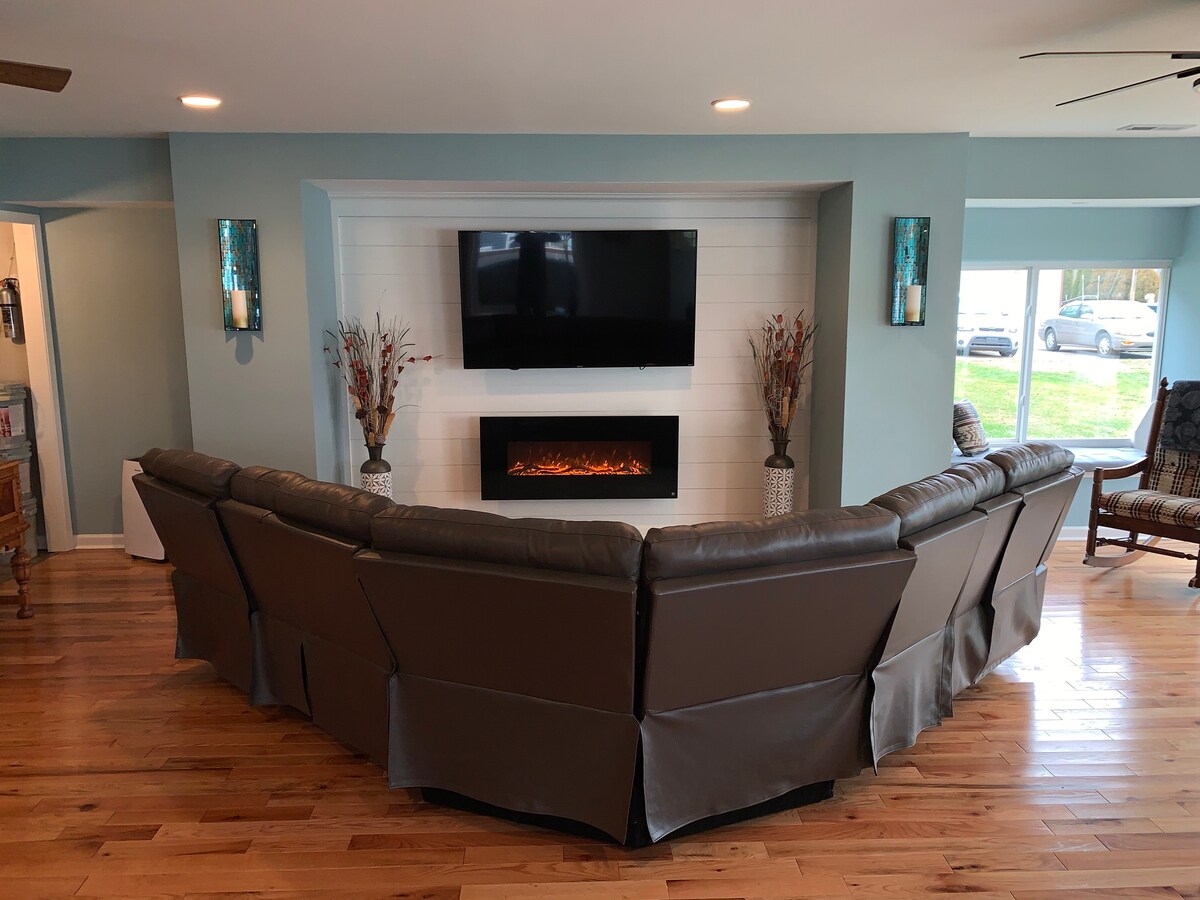 La casa Hilltop Lake está lista para crear tus recuerdos familiares con la fachada del lago. Ven a disfrutar de nuestra espaciosa casa de 6 dormitorios y 4 y 2 baños. Ofrecemos dos cocinas arriba y abajo. Tenemos un sinfín de entretenimiento, mesa de billar, tablero de dardos, hockey de aire, máquinas recreativas PAC-Man y cornhole. El Tiki Bar al aire libre con columpios y sala de estar te invitan a sumergirte en las tranquilas vistas al lago, mientras que el acceso al lago te garantiza que estés a solo unos minutos de todos los deportes acuáticos y la pesca que Nettle Lake tiene para ofrecer.
