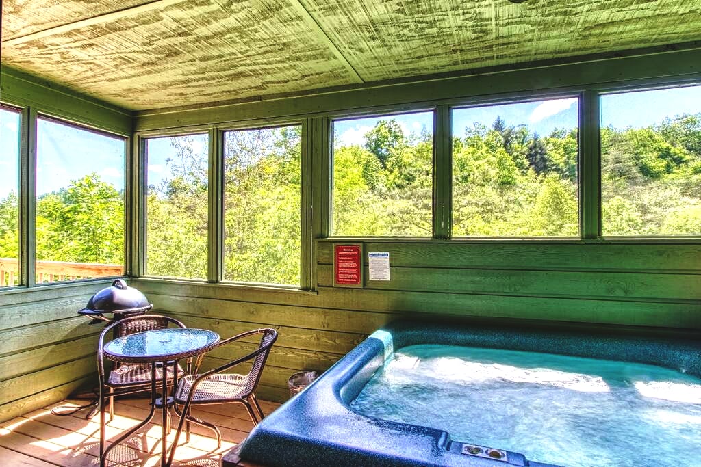 ¡Echa un vistazo a esta acogedora cabaña de 2 dormitorios! Cada dormitorio tiene su propio baño privado. Perfecta para parejas o una familia pequeña. Con una ubicación PRIVILEGIADA, JACUZZI privado, chimenea de gas, cocina totalmente surtida, lavadora y secadora, wifi de alta velocidad y un montón de estacionamiento privado, tendrás todo lo que necesitas para una estancia relajante e inolvidable. Se admiten mascotas con un patio trasero vallado para tus bebés peludos. Llegada autónoma para mayor comodidad. ¡Reserva ahora y crea recuerdos en las Smokies!