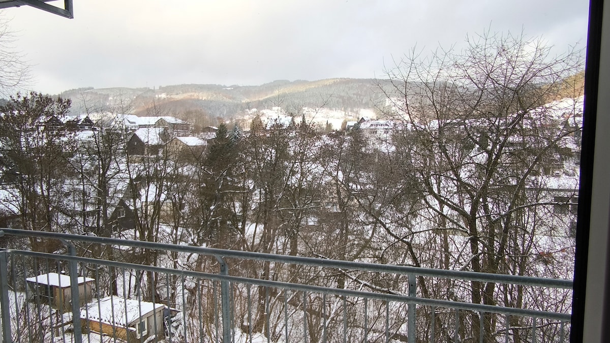 Habitación familiar/apartamento de 55 m² con balcón, a 500 metros del Mühlenkopfschanze y Skywalk, a 100 metros del parque infantil, a 2 km del centro de Willingen, piscina de agua salada, pista de patinaje y remontes. Muchas rutas de senderismo y ciclismo de montaña en las inmediaciones. Eventos en Willingen: Copa del Mundo de salto de esquí, Festival MTB, Harley Bike Week, conciertos al aire libre, Alphornmesse y mucho más. Impuesto turístico de 3 € por persona y día a pagar en el alojamiento Aparcamiento para bicicletas/motocicletas, estacionamiento gratuito, Wifi