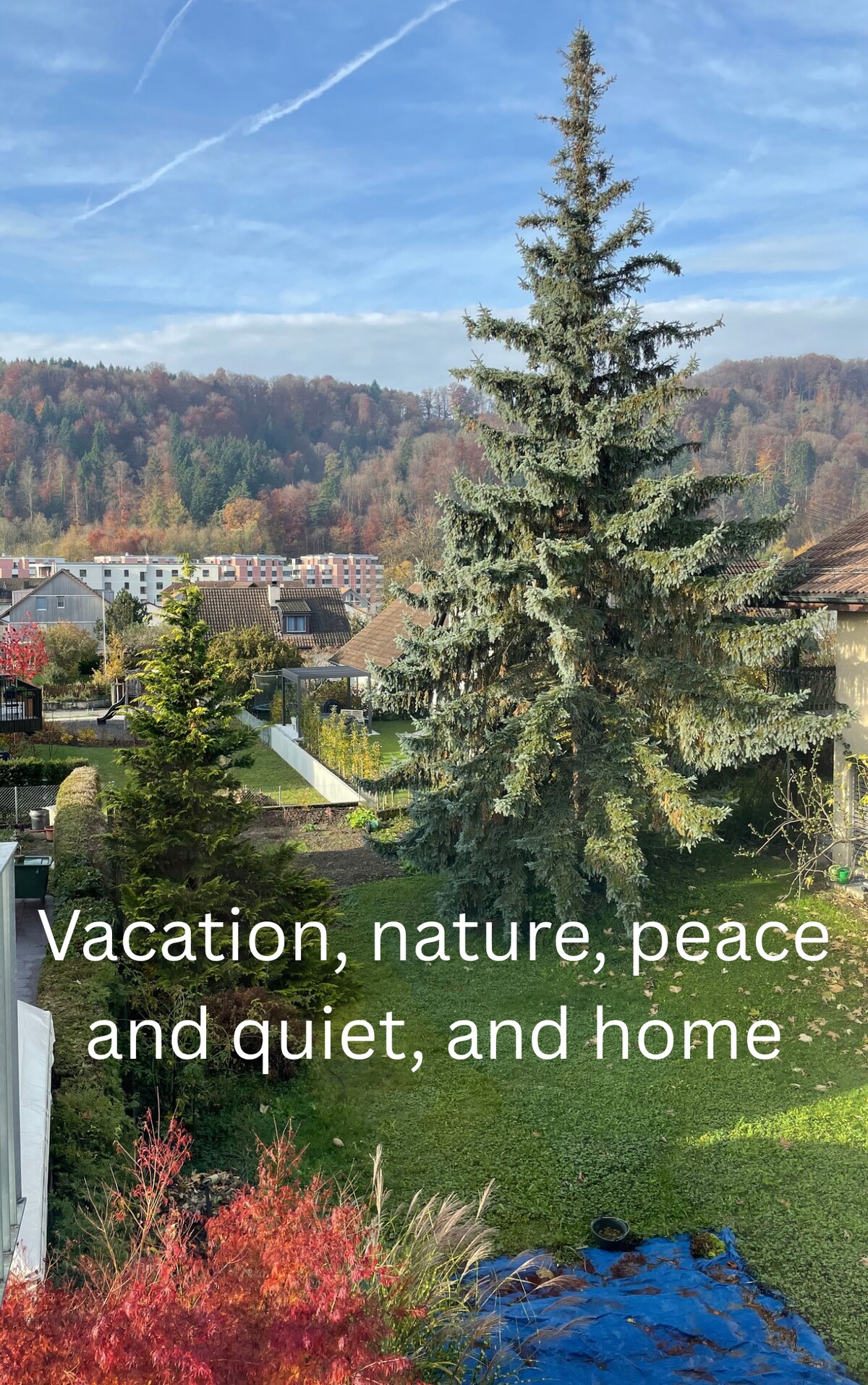 Disfruta de la naturaleza, el pequeño río, el canto de los pájaros por la mañana y el vino local. O simplemente haz senderismo o coge la bicicleta y explora los innumerables aspectos más destacados de los alrededores. Nuestra casa se encuentra directamente en la soleada ladera de la montaña Irchel, que alcanza casi 700 metros de altitud y tiene muchas rutas de senderismo y viñedos por el bosque. En la cima de la colina se puede ver el hermoso panorama alpino. Aquí también encontrarás orquídeas. Se puede llegar a Rheinfall, Schaffhausen y Zurich en 30 minutos, Winterthur en 15 minutos.
