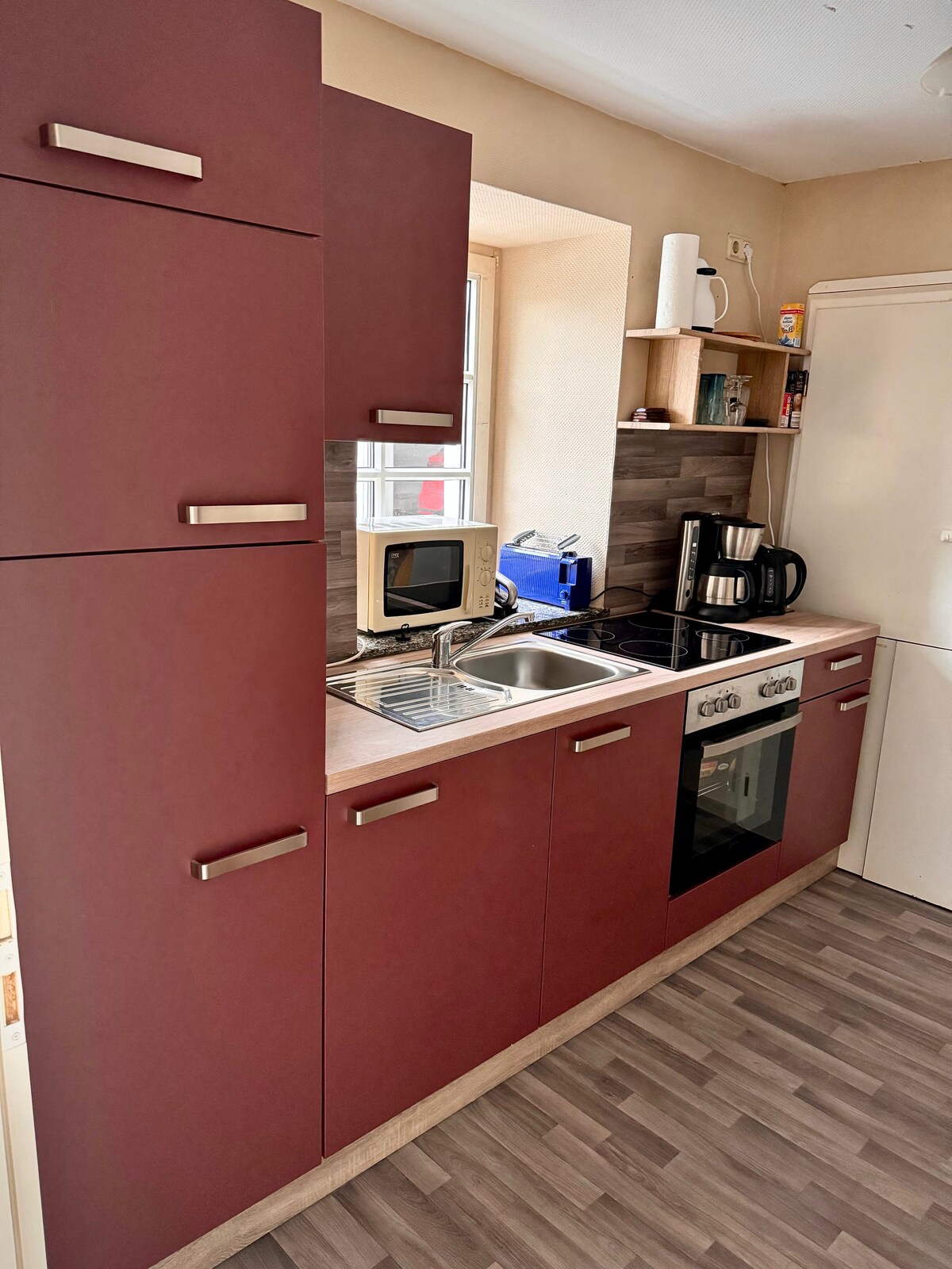 Nuestro moderno apartamento de vacaciones de 55 m² tiene capacidad para 2 personas y está situado en el centro de Mülheim an der Mosel. En el lugar todo es fácilmente accesible a pie. El apartamento consta de: -una acogedora sala de estar -una cocina americana totalmente equipada. -varias cafeteras -Microondas y nevera-congelador -un amplio comedor y un dormitorio separado. Equipamiento del cuarto de baño: -Ducha/inodoro -Secador de pelo -Lavadora El precio incluye ropa de cama y toallas.
