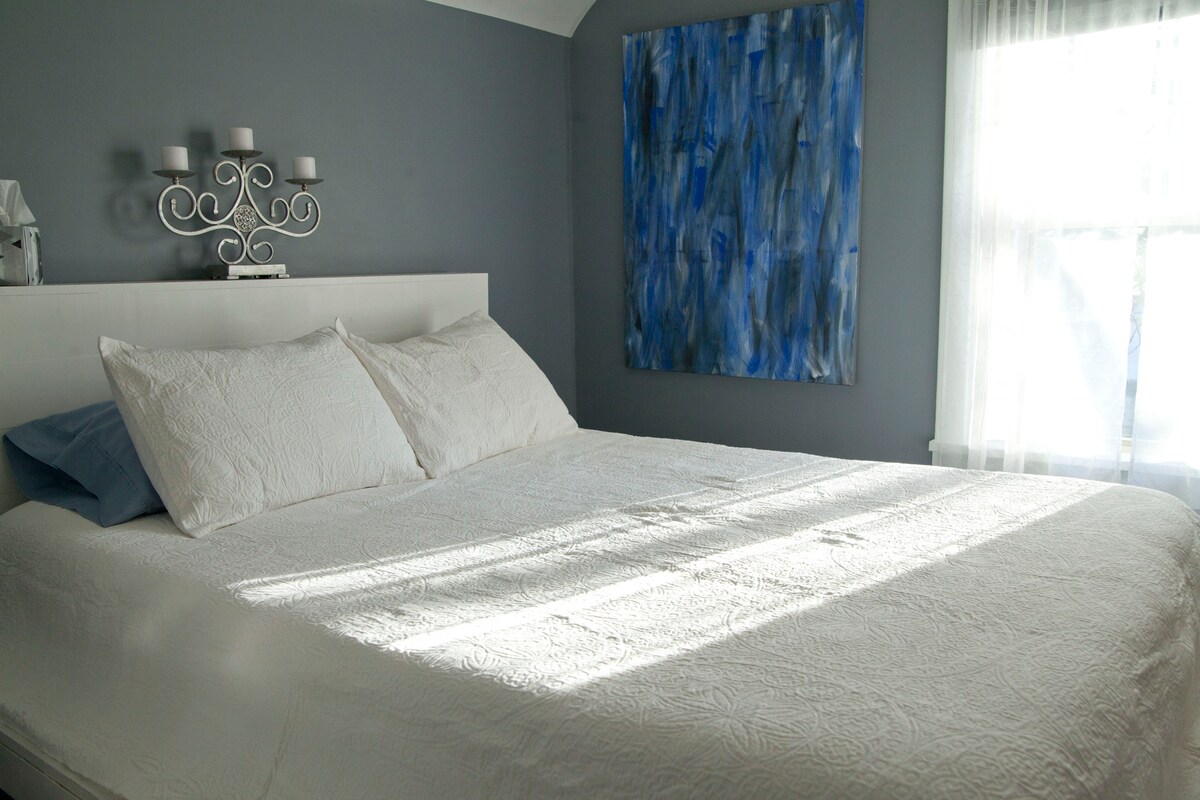 Este estudio diseñado por un arquitecto está bañado por luz natural, con tragaluces y un rincón para desayunar con una ventana envolvente. Con un baño de lujo con ducha a ras de suelo, este cómodo espacio cuenta con todos los servicios perfectos para una escapada rápida de fin de semana o un viaje de negocios de una semana. El estudio está al lado de una casa y sube un tramo de escaleras a través de una entrada exterior independiente. Situado justo al final de la colina, a 5 minutos a pie del centro de Middleton y a 15 minutos en coche de la Universidad de Wisconsin y del centro de Madison.