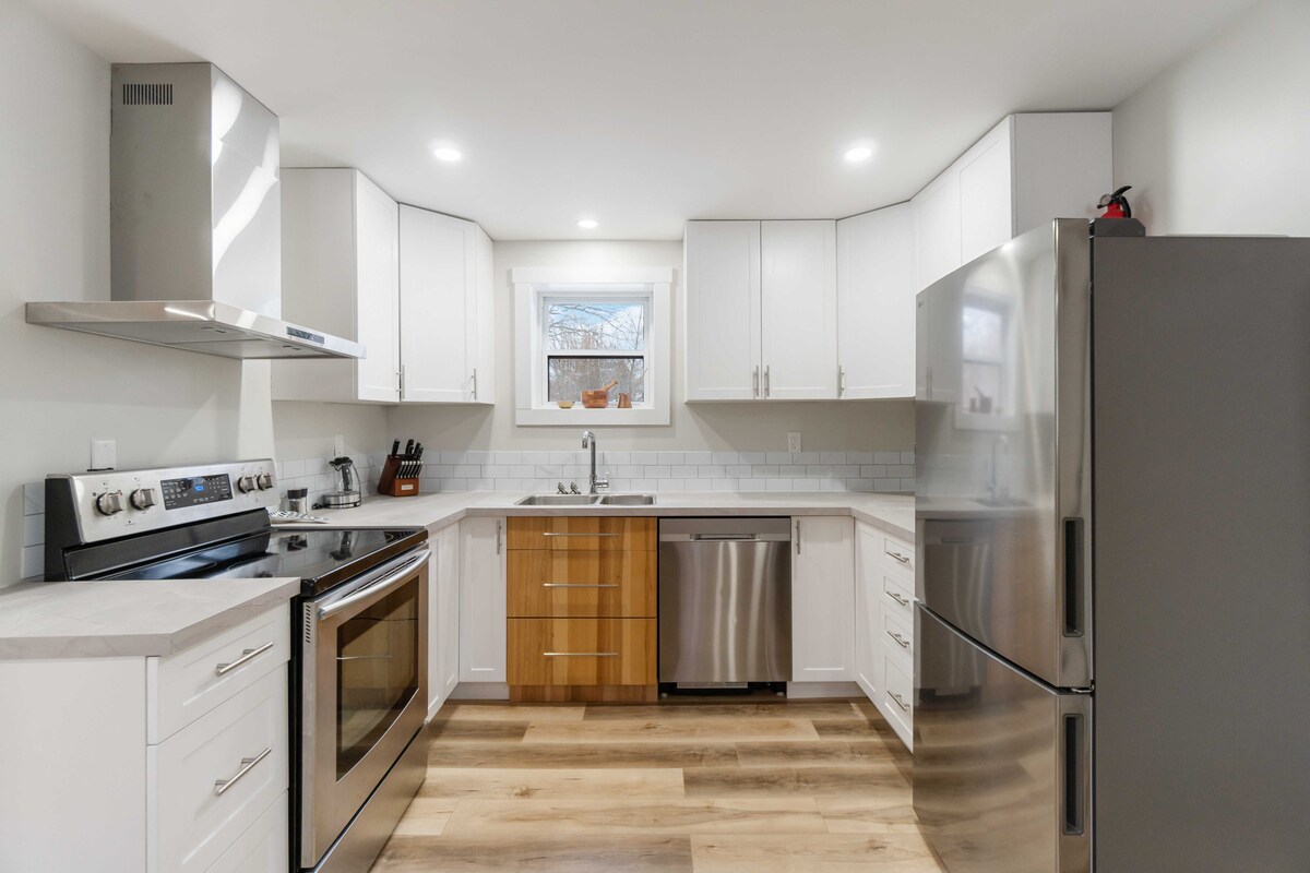 Un apartamento de diseño moderno y de nueva construcción en una ubicación fantástica que está a pocos minutos a pie de todo en Wolfville. El apartamento de 1 dormitorio consta de una cama tamaño queen, una cocina completa y un baño, asientos para 4 personas en la sala de estar, una mesa de comedor, asientos de bar y un pequeño patio al aire libre. El apartamento está totalmente separado de nuestra casa y encima del garaje. Hay una televisión inteligente y wifi, así como aire acondicionado y aparcamiento en el sitio para un vehículo. Este es un apartamento para no fumadores y no se admiten mascotas.