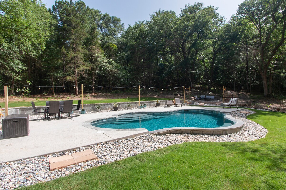 Te damos la bienvenida a una pequeña porción de cielo en The Pine Retreat. La Villa es nuestra minicasa vintage de inspiración italiana, rodeada de 4 acres de árboles altos y exuberantes. En el exterior, puedes sumergirte en el jacuzzi de cedro mientras miras las estrellas o ves Netflix en nuestra pantalla de proyector al aire libre. En el interior, cocina una cena romántica, acurrúcate y ve películas o juega con nuestra selección de juegos para familias, amigos o parejas. ¡A 5 minutos del centro de Mineola, a 9 minutos de Mineola Country Club y Lake Holbrook!