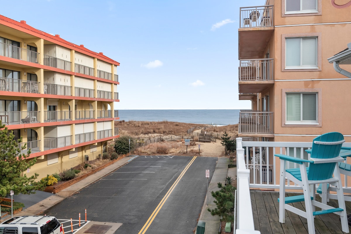 Despiértate con el sonido de las olas rompiendo fuera de tu ventana y termina tus días relajándote en el balcón privado mientras observas la luna salir sobre el océano. Ven a encontrar tu serenidad junto al mar en nuestro moderno condominio frente al mar. Ubicado en el centro de Ocean City, puedes mantener tu auto estacionado en nuestro lugar dedicado y caminar hasta muchos de los mejores restaurantes, bares y entretenimiento de la ciudad, así como el Centro de Convenciones y el Centro de Artes Escénicas. Paseos matutinos por la playa y sorbos por la noche te esperan :)