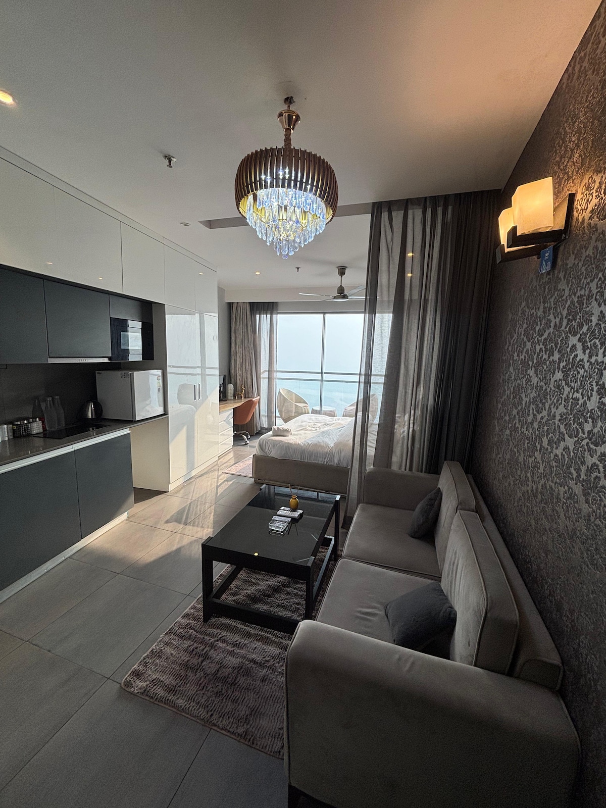Introducing our exquisite luxury studio apartment: Nestled in the heart of the city, this opulent studio boasts modern elegance and unparalleled comfort. The open-concept design invites you into a spacious haven, bathed in natural light from the large windows that offer breathtaking city views. This apartment is on the 41st floor in one of the tallest sky scraper in Delhi - NCR. The apartment has a river facing view from the balcony!!