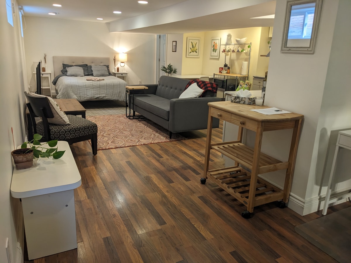 Disfruta de lo mejor de Toronto, High Park, Bloor West Village y The Junction en esta amplia habitación. A 4 minutos a pie del metro y a 10 minutos a pie de High Park. Este estudio de 850 pies cuadrados incluye una cama tamaño king con opciones de dormir flexibles adicionales (colchón de aire y paquete infantil 'n play según sea necesario). Entretenimiento incluido: wifi, Netflix, Amazon Prime Video, Apple TV, Disney+ y mucho más.