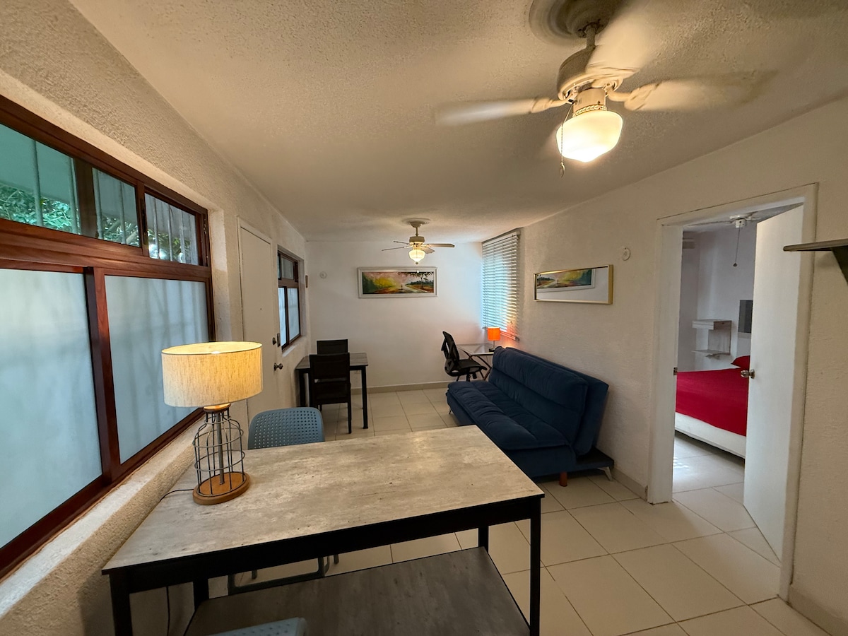 Precioso loft remodelado ideal para parejas, nos esforzamos en tenerlo impecable y con todos los servicios posibles. Ubicado a 2 cuadras de Prolongación Paseo Montejo, en Colonia Buenavista. WIFI de 300 mb/segundo Disfruta de una cómoda cama matrimonial y una Smart TV de 55”.