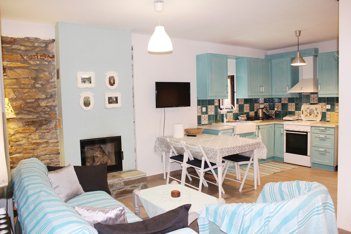 Sobre este espacio. Bienvenidos a Portaria, la joya de Pelion. Nuestro apartamento es un lugar cálido y acogedor para aquellos que quieran descubrir la belleza natural de la montaña, a un paso de la ciudad de Volos. La ubicación es ideal, en las calles empedradas de Portaria, y la casa tiene capacidad para 5 personas.