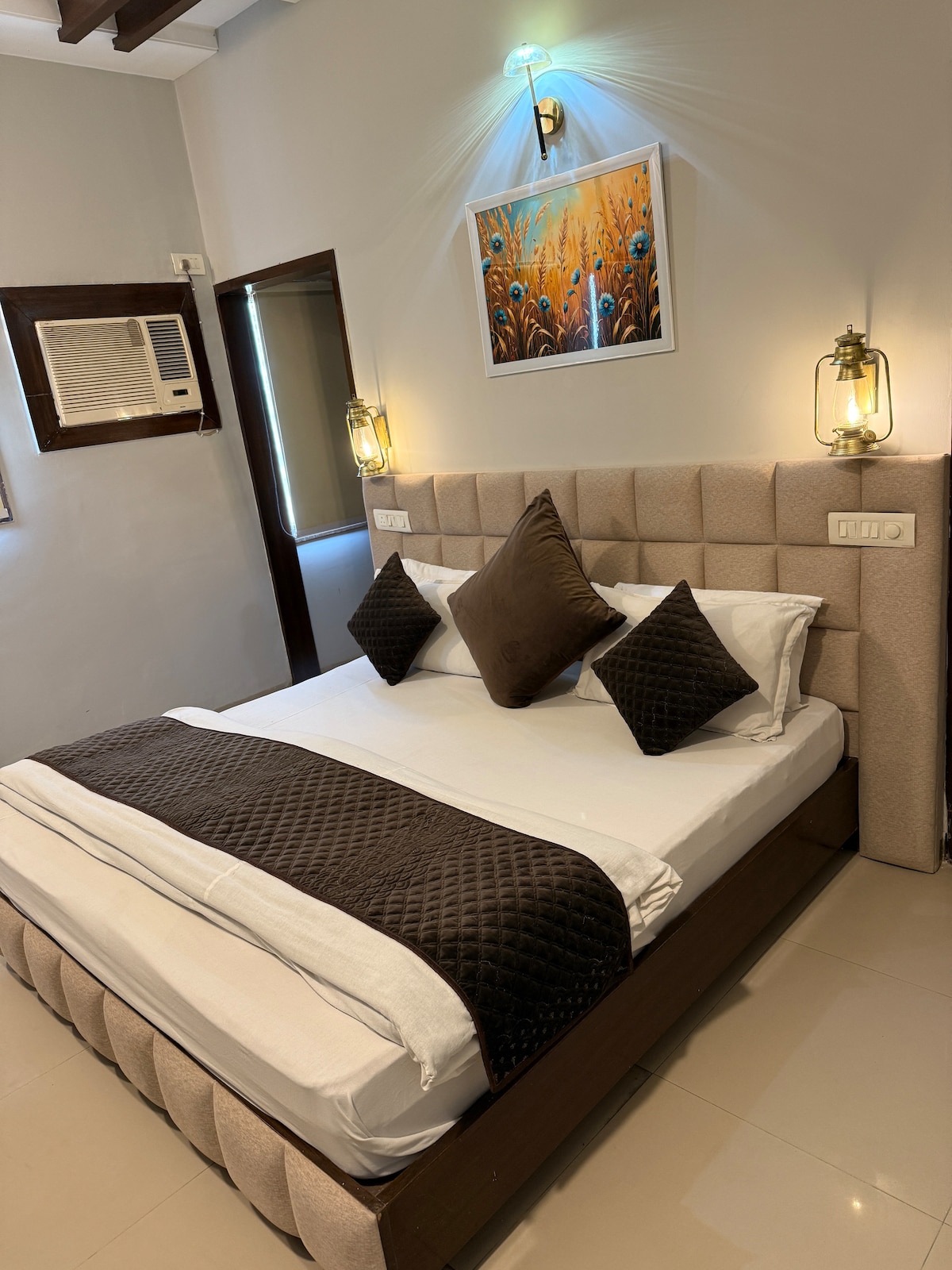 It's a newly built property, sits in a peaceful area with ample parking. The spacious room features a large window, perfect for smoking or fresh air. Comfortably fitting two, it’s ideal for relaxation, with modern furnishings and a calm vibe. Extra guests cost 200 per person beyond two, and 100 for children. Natural light floods the space, enhancing its airy feel. It’s a great retreat after a day out, blending convenience and tranquility in a fresh, contemporary setting.